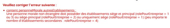 - soucis de communication entre les Greffes et l’INPI (ou guéguerre, les premiers saisissant la moindre occasion de rejeter les formalités afin de saboter au maximum le dispositif ?) qui se traduisent par des messages (abs)cons comme celui-ci :