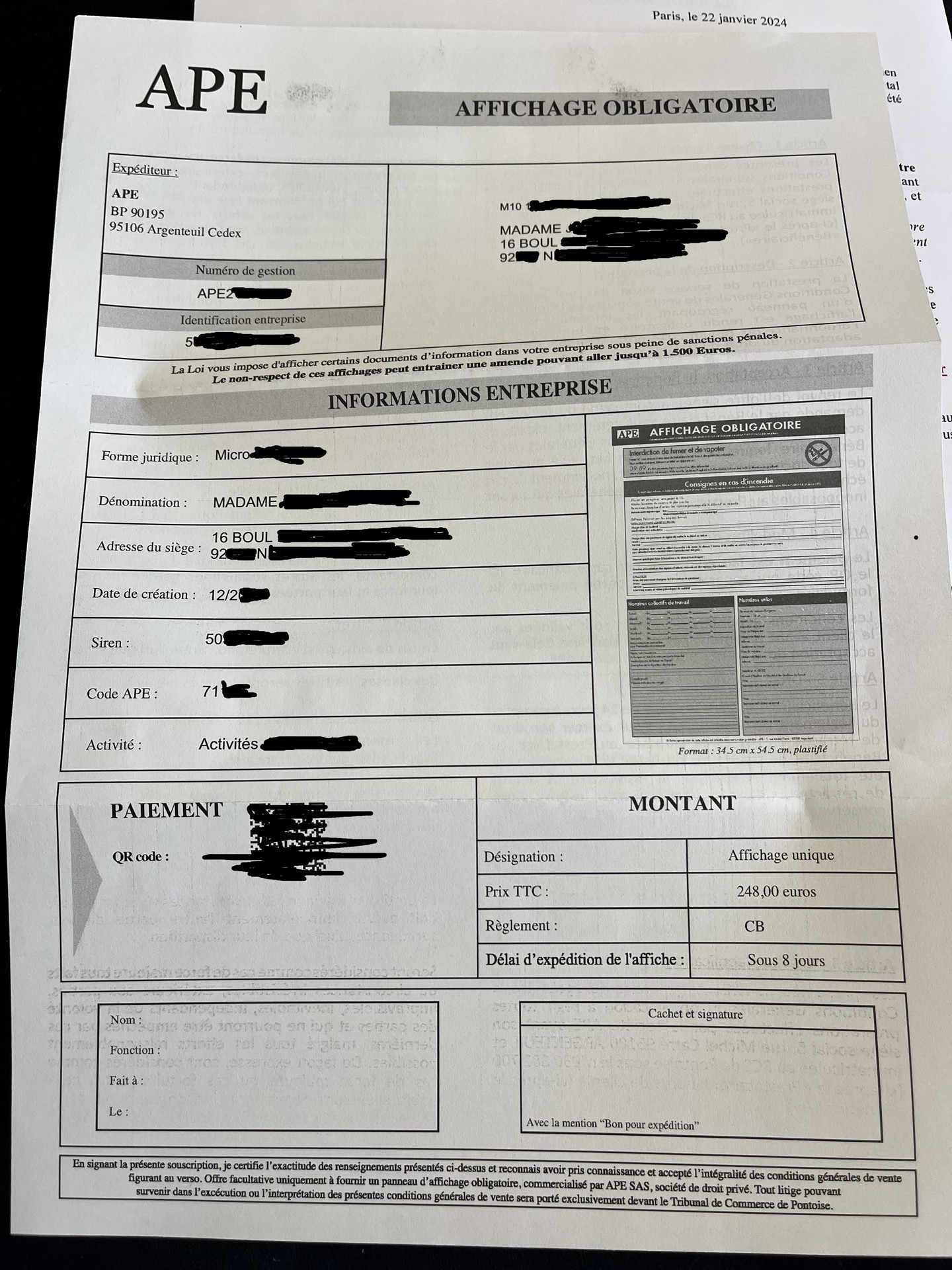 Nous avons malencontreusement renvoyé le document signé "Registre commercial"et nous recevons maintenant la facture de "Best Business" d’un montant de 998 €.